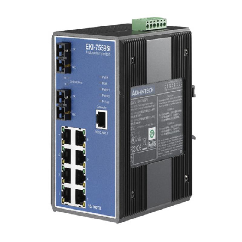 研華EKI-7559SI 8+2SC 光纖端口寬溫網管型工業以太網交換機