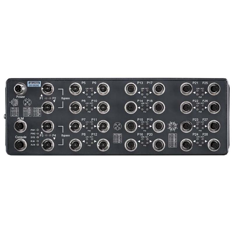 - Advantech’s EKI-9528 series Ethernet switch delivers a ruggedized design with high EMC performance to rolling stock, wayside control, and other railroad applications. This solution leverages M12 connectors for Ethernet, console, relay, and power-input — ensuring excellent connectivity.