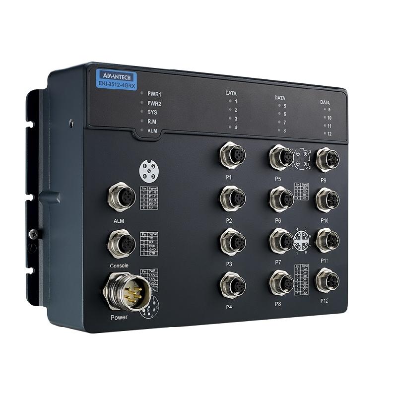 - The EKI-9512E(G)-4GRX Ethernet switch is designed for railway applications with rugged housing and high EMC performance. It is a suitable networking solution for rolling stock and wayside applications.