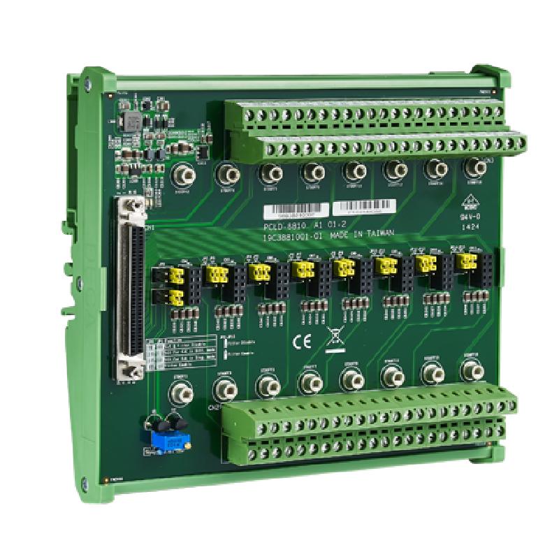 - PCLD-8810I 設計用于將多功能卡與 68 針 SCSI-II 連接器相匹配,例如 PCI-1710/1710L/1710HG/1710HGL/1711/1711L/1716/17416L/1741U/1742U 卡。PCLD-8810E 設計用于將多功能卡與 68 針 SCSI-II 連接器(如 PCIE-1810/1816/1816H 卡)相匹配。此螺釘端子板還包括 冷端傳感電路,允許從熱電偶傳感器直接測量。結合軟件補償和線性化,適用于每種熱電偶類型。 由于其特殊的PCB布局,您可以安裝PCLD-8811來構建自己的信號調理電路。