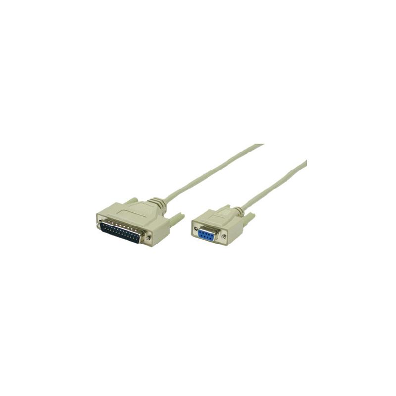 - PC-AT modem cable converts 25-pin serial to 9-pin AT serial